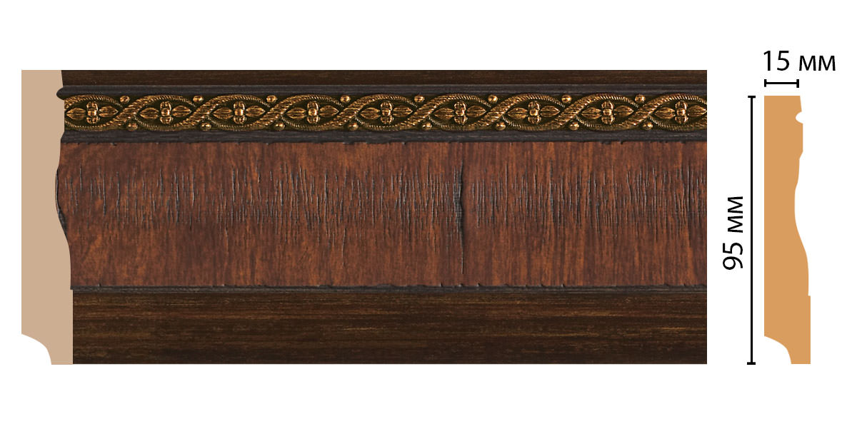 Плинтус напольный из дюрополимера DecoMaster D153-2 — готовая модель с декоративным покрытием под дерево для чистого и завершённого оформления примыкания стены к полу.