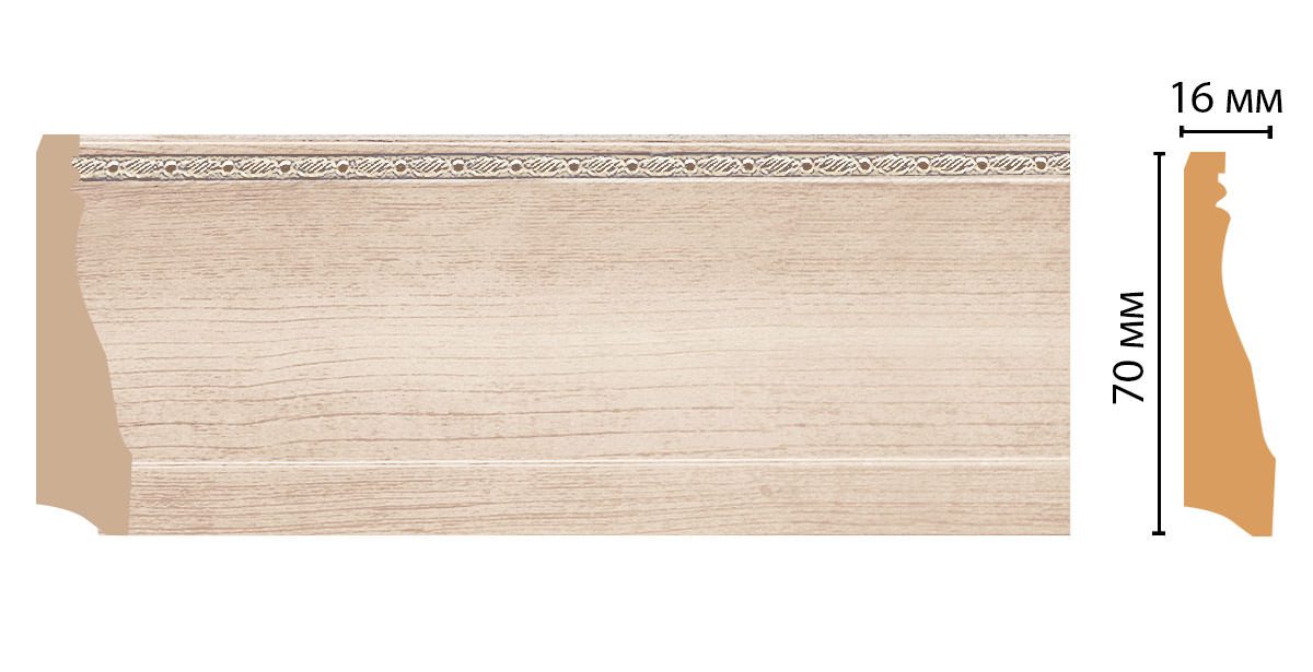 При выборе модели стоит ориентироваться на высоту профиля, пропорции помещения и характер интерьера. Размер 2.4 м × 70 × 16 мм помогает заранее оценить, насколько плинтус будет уместен в конкретном проекте.