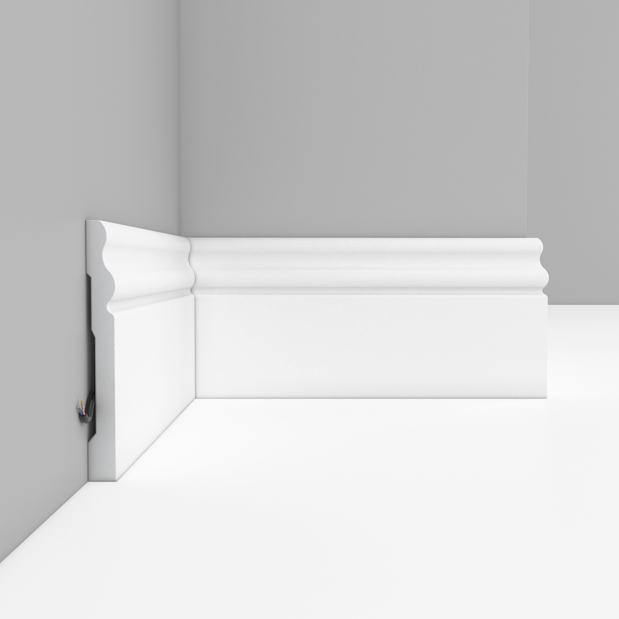 Плинтус напольный из дюрополимера DecoMaster A015 — модель под покраску для чистого и завершённого оформления примыкания стены к полу.