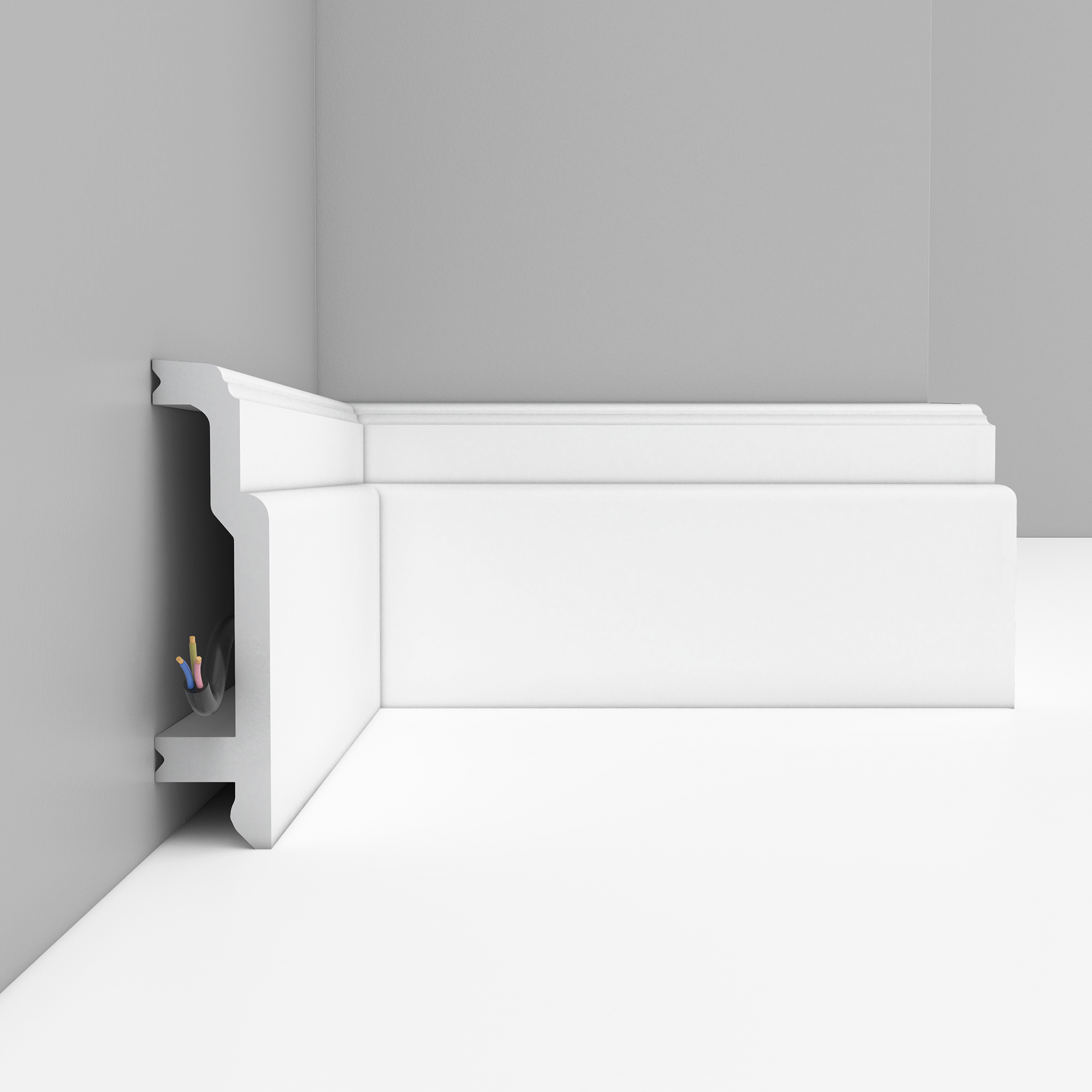Плинтус напольный из дюрополимера DecoMaster A155 — модель под покраску для чистого и завершённого оформления примыкания стены к полу.
