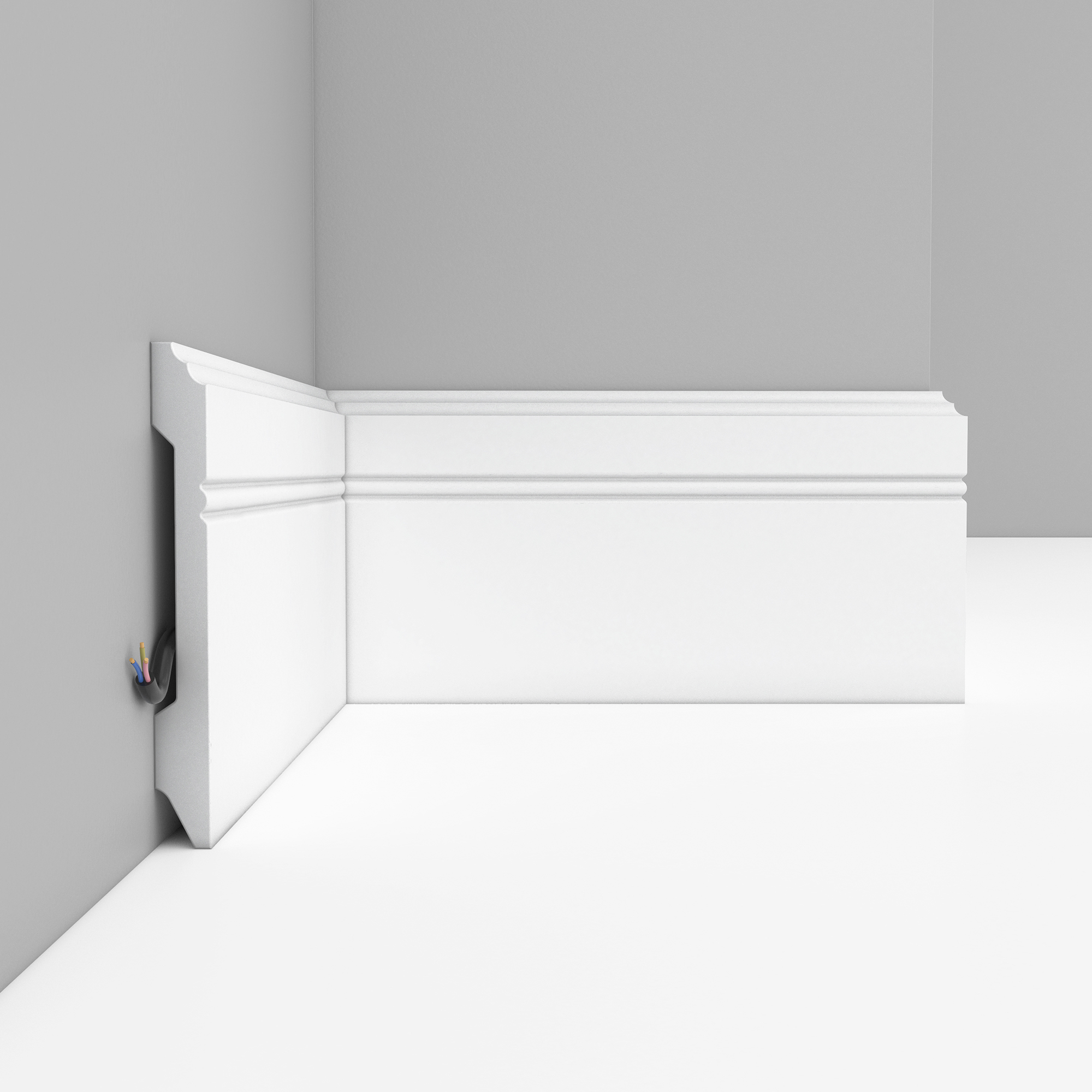 Профиль помогает оформить примыкание стены к полу более чисто и выразительно, а белая поверхность подходит для последующей окраски в нужный оттенок интерьера. Модель подходит для жилых и коммерческих помещений, включая коридоры, проходные зоны и другие пространства с более активной эксплуатацией.