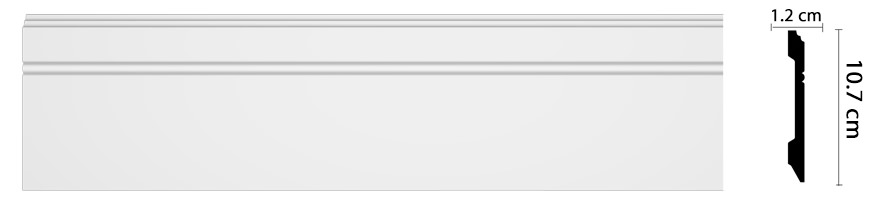 Тонкий защитный слой имеет более высокую плотность — порядка 1000 кг/м³. За счёт этого плинтус получает повышенные ударопрочные характеристики, лучше переносит бытовые нагрузки и дольше сохраняет аккуратный внешний вид. При этом профиль остаётся достаточно лёгким и сохраняет возможность последующей покраски.