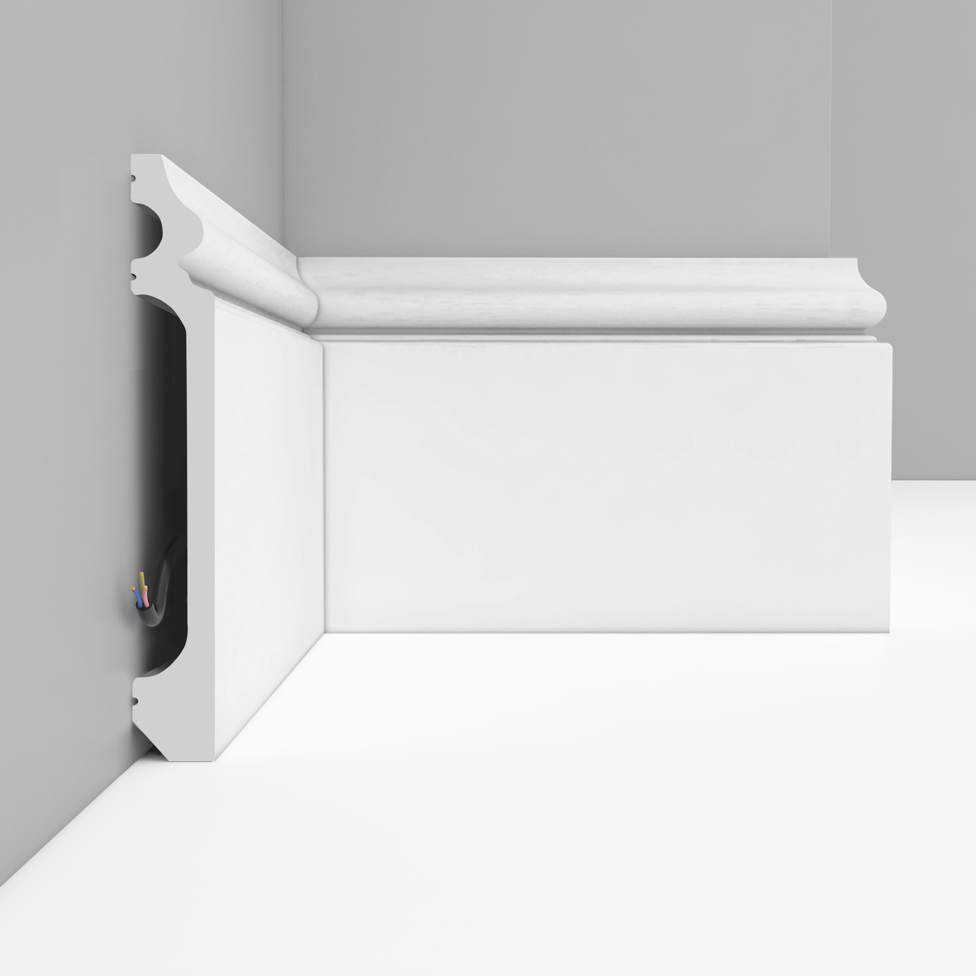 Профиль помогает оформить примыкание стены к полу более чисто и выразительно, а белая поверхность подходит для последующей окраски в нужный оттенок интерьера. Модель подходит для жилых и коммерческих помещений, включая коридоры, проходные зоны и другие пространства с более активной эксплуатацией.