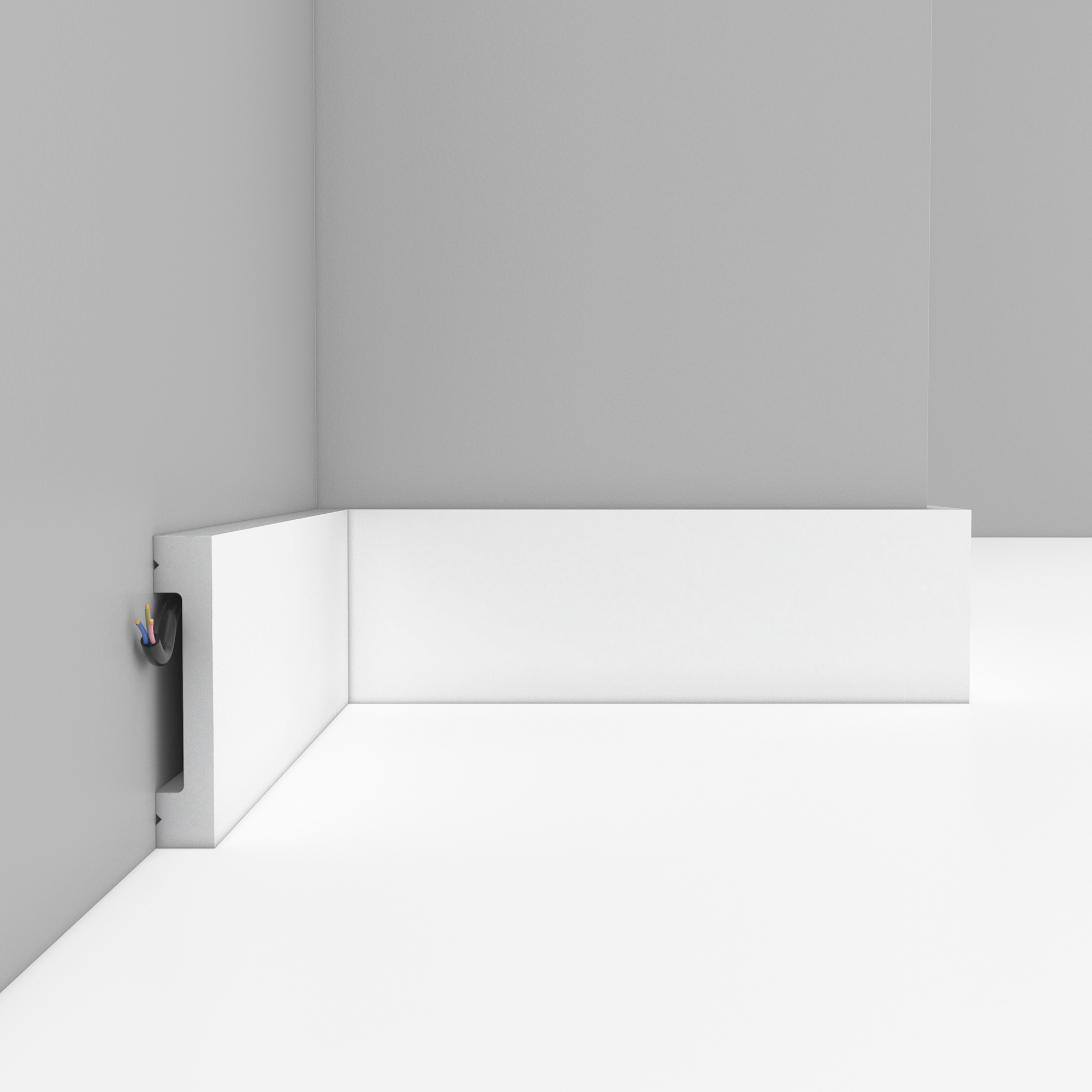Профиль помогает оформить примыкание стены к полу более чисто и выразительно, а белая поверхность подходит для последующей окраски в нужный оттенок интерьера. Модель подходит для жилых и коммерческих помещений, включая коридоры, проходные зоны и другие пространства с более активной эксплуатацией.