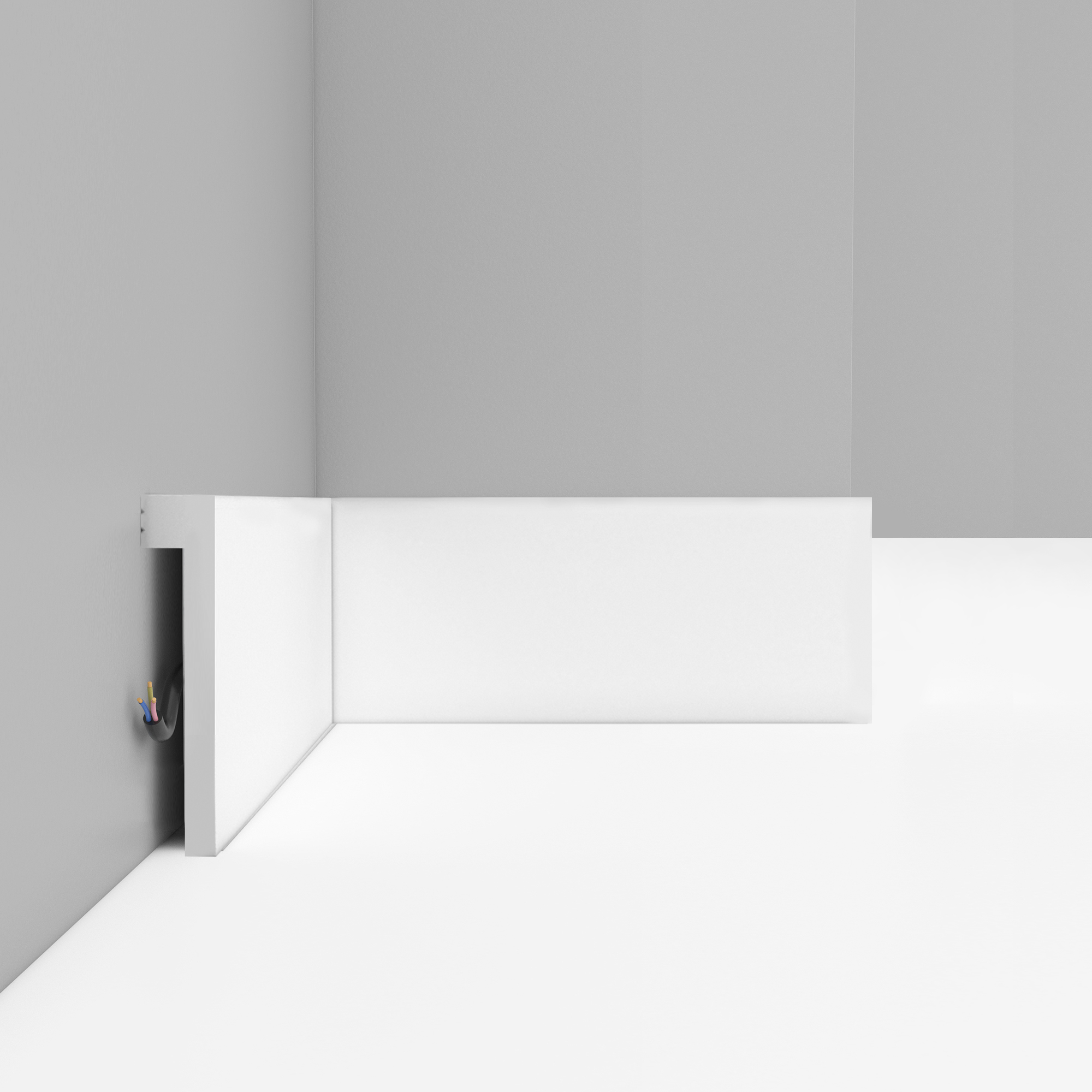 Профиль помогает оформить примыкание стены к полу более чисто и выразительно, а белая поверхность подходит для последующей окраски в нужный оттенок интерьера. Модель подходит для жилых и коммерческих помещений, включая коридоры, проходные зоны и другие пространства с более активной эксплуатацией.