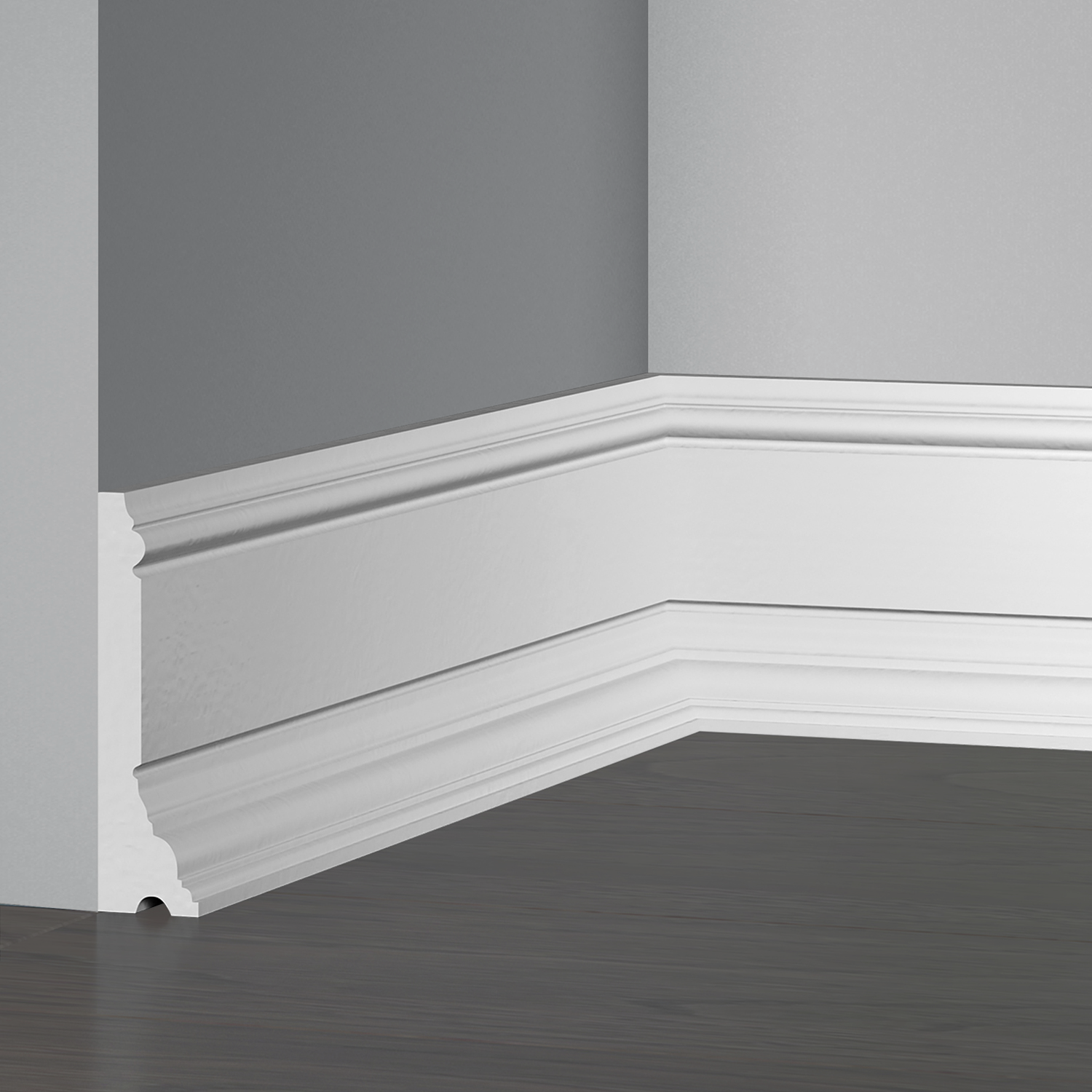 Тонкий защитный слой имеет более высокую плотность — порядка 1000 кг/м³. За счёт этого плинтус получает повышенные ударопрочные характеристики, лучше переносит бытовые нагрузки и дольше сохраняет аккуратный внешний вид. При этом профиль остаётся достаточно лёгким и сохраняет возможность последующей покраски.