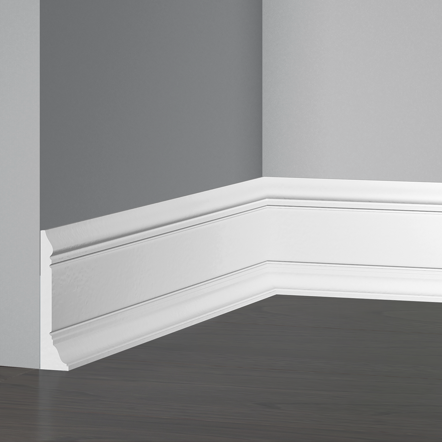 Тонкий защитный слой имеет более высокую плотность — порядка 1000 кг/м³. За счёт этого плинтус получает повышенные ударопрочные характеристики, лучше переносит бытовые нагрузки и дольше сохраняет аккуратный внешний вид. При этом профиль остаётся достаточно лёгким и сохраняет возможность последующей покраски.