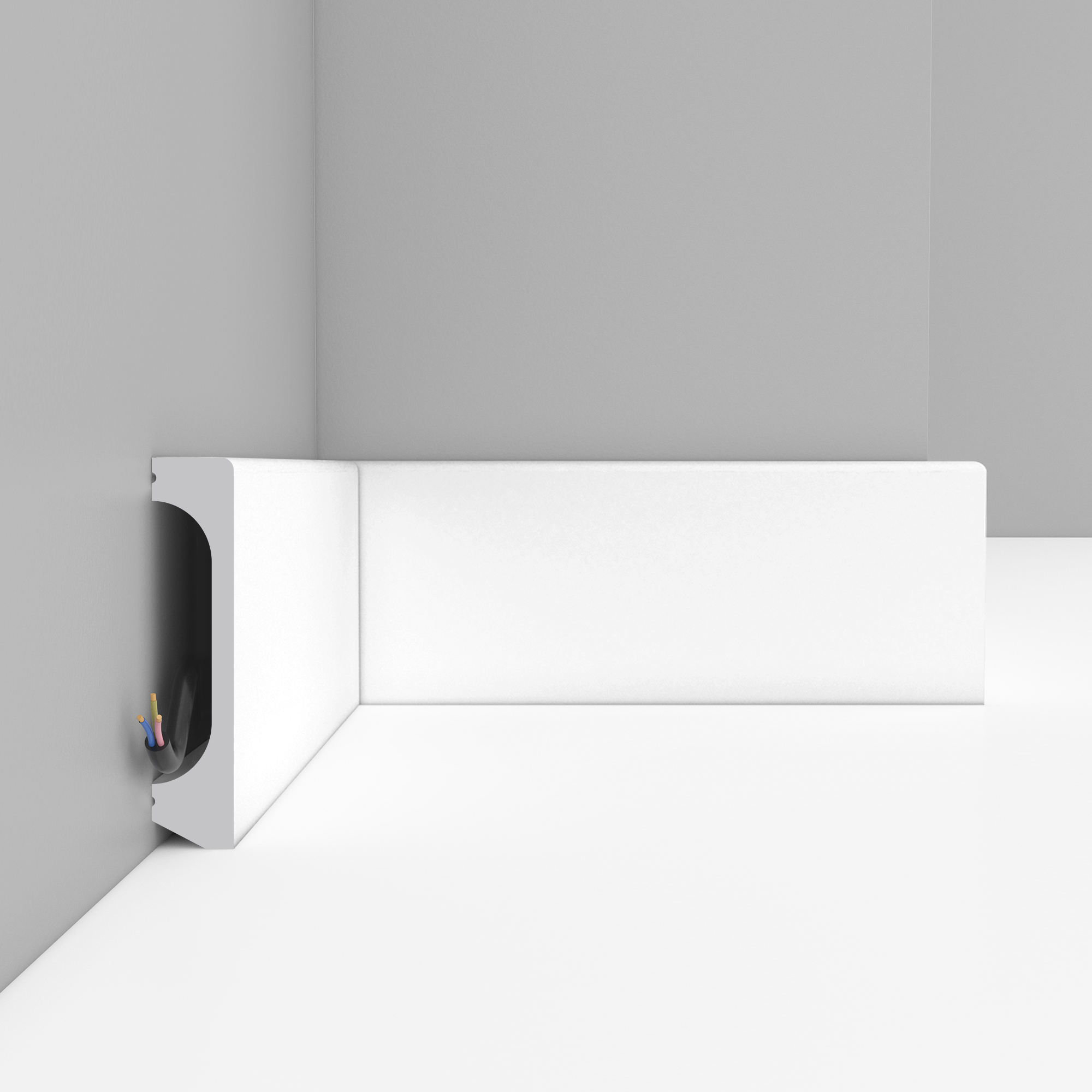 Профиль помогает оформить примыкание стены к полу более чисто и выразительно, а белая поверхность подходит для последующей окраски в нужный оттенок интерьера. Модель подходит для жилых и коммерческих помещений, включая коридоры, проходные зоны и другие пространства с более активной эксплуатацией.